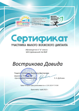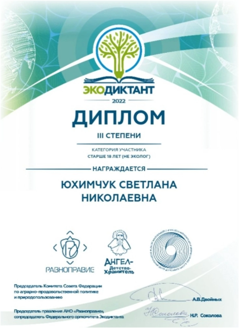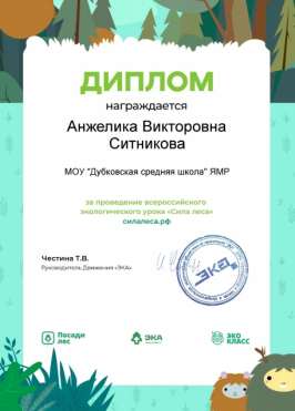 Обучающиеся нашей школы традиционно принимают участие в Региональных и Всероссийских мероприятиях. Каждый год в ноябре месяце ребята становятся участниками Экологического диктанта, где могут показать свои знания, сравнить имеющиеся экологические компетенции с результатами участия ребят из других образовательных учреждений. В этом году наши мальчишки и девчонки подтвердили свои знания в области экологии на практике. Самые знающие экологическую науку ученики принесли школе дипломы победителей и призёров.