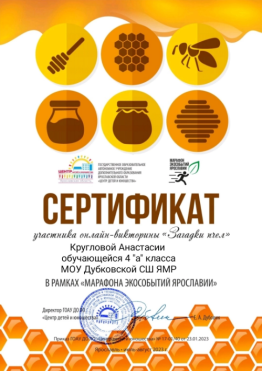 Ребята объединений дополнительного образования приняли активное участие в ежегодной Всероссийской олимпиаде школьников "Эколята молодые защитники природы"" Участие в мероприятии прошло при поддержке педагога-организатора Ситниковой А.В., которая была удостоена сертификатом.